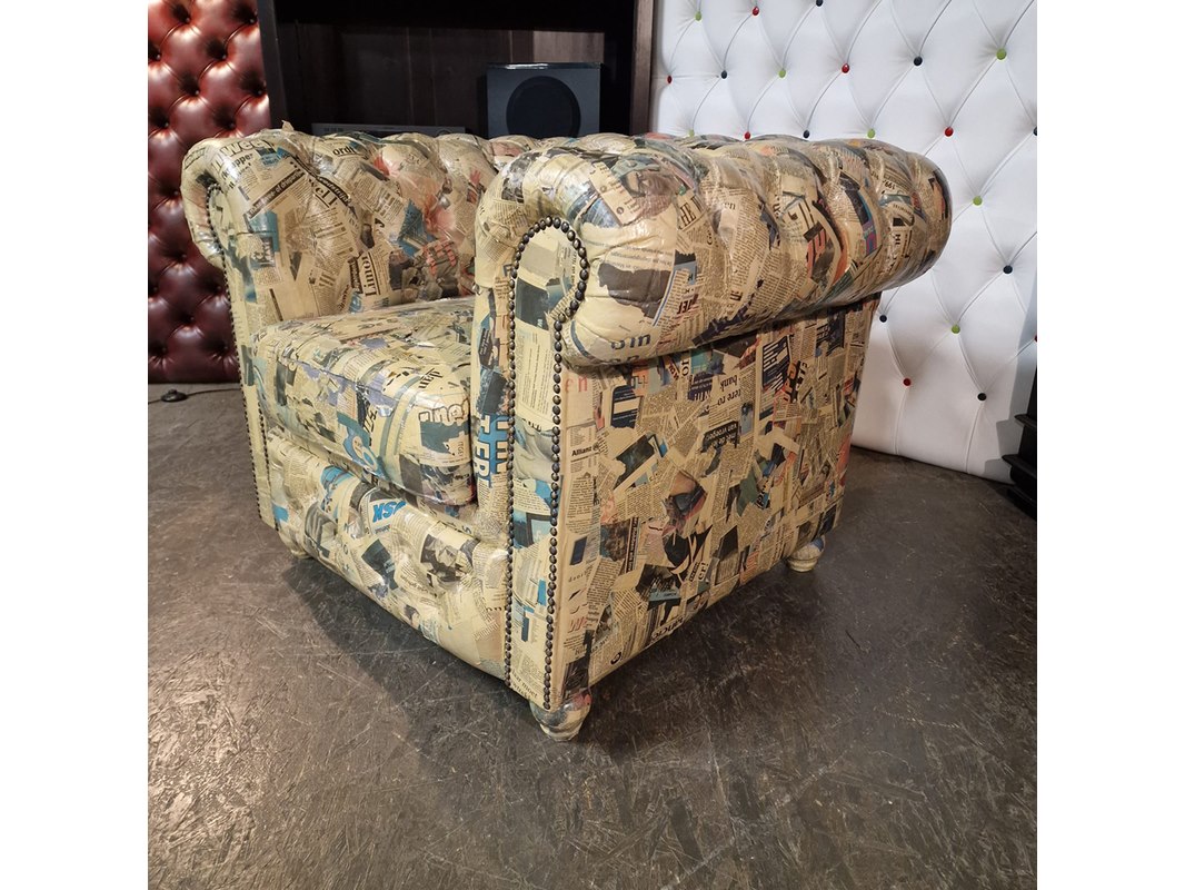 Merk: Chesterfield Product: Fauteuil Kleur: meerkleurig Materiaal: leer Afmeting: 79x100x92 Conditie: nieuw Specificaties: Afmetingen: Breedte:100 cm Hoogte: 79 cm Diepte: 92 cm Zitdiepte: 56 cm Zithoogte: 50 cm