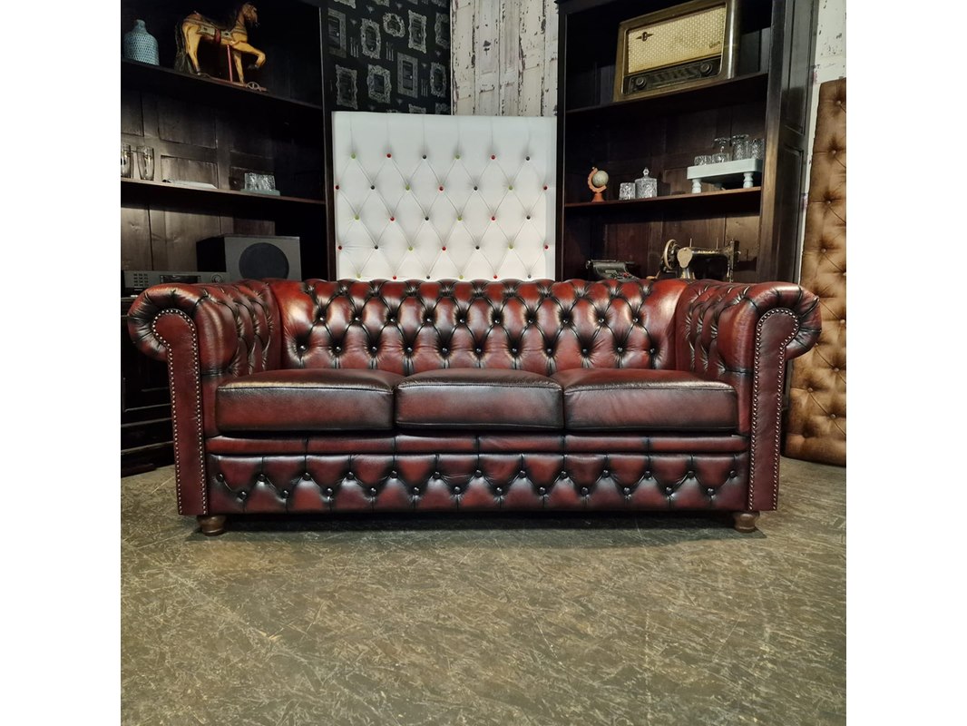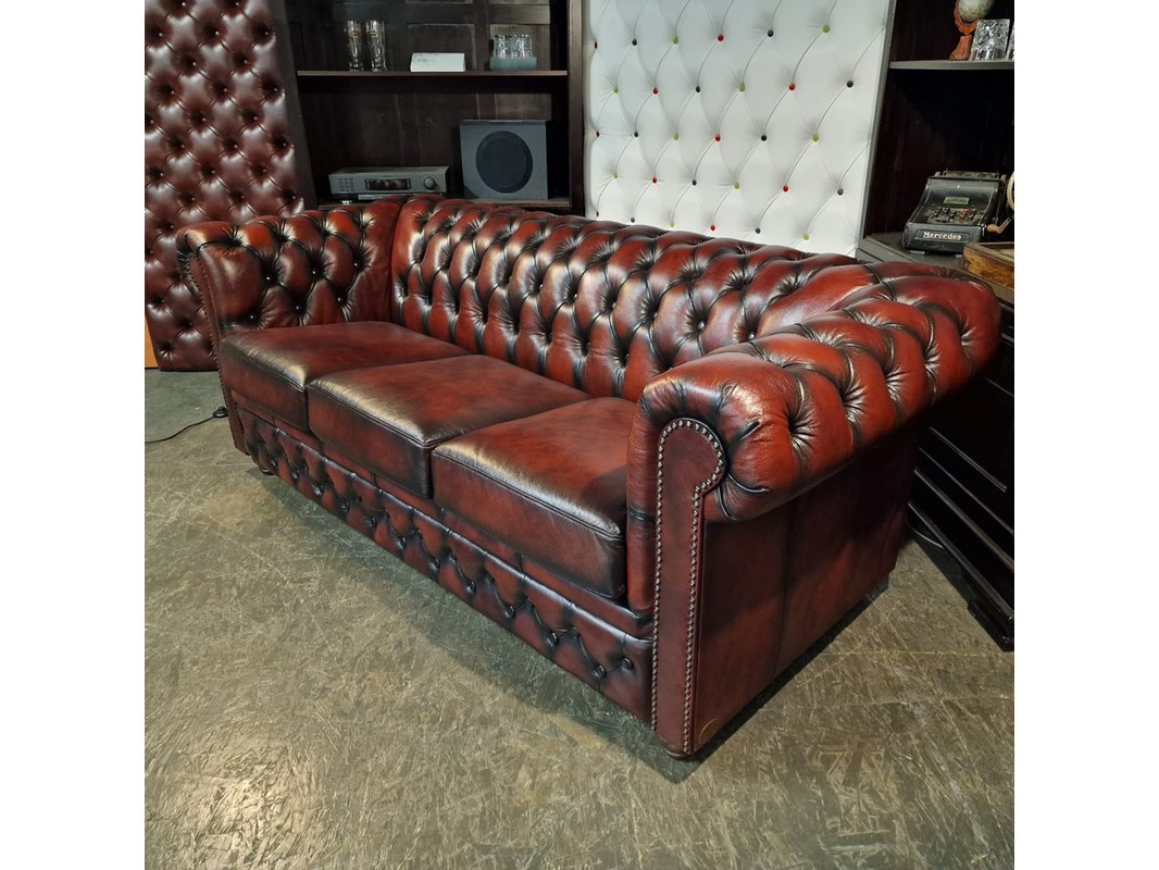Merk: Chesterfield Product: 3-Zits Bank Kleur: rood Materiaal: leer Afmeting: 79x200x92 Conditie: nieuw Specificaties: Afmetingen: Breedte: 200 cm Hoogte: 79 cm Diepte: 92 cm Zithoogte: 50 cm Zitdiepte: 56 cm