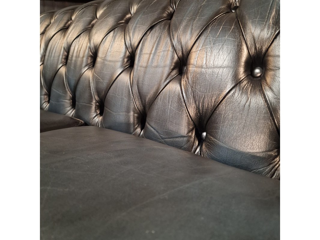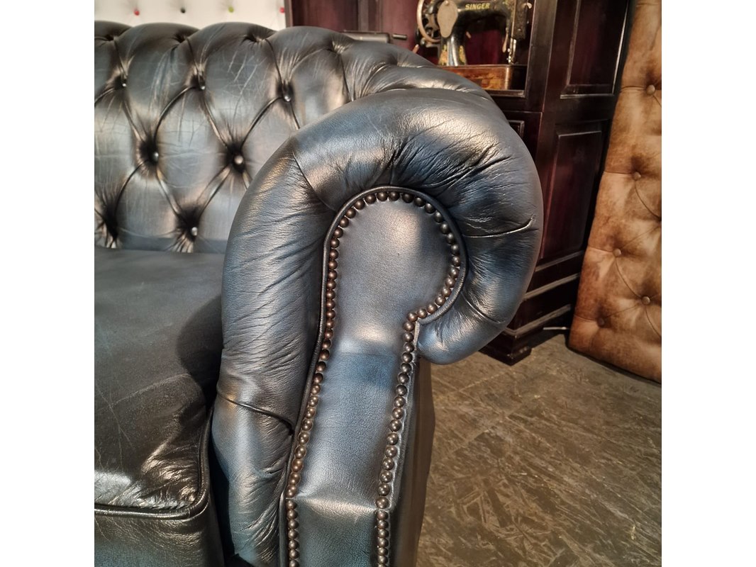 Merk: Chesterfield Product: 3-Zits Bank Kleur: blauw Materiaal: leer Afmeting: 84x205x84 Conditie: gebruikt Specificaties: Afmetingen: Breedte: 205 cm Hoogte: 84 cm Diepte: 84 cm