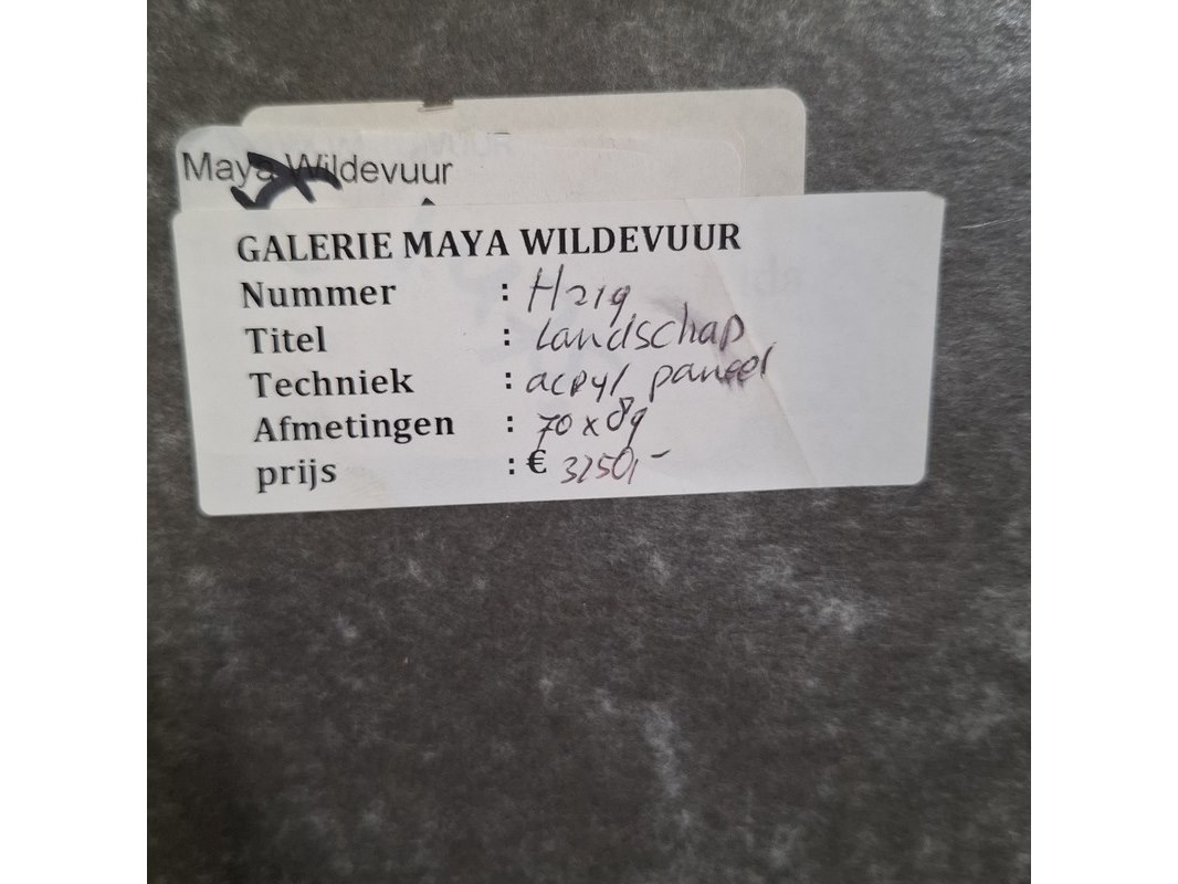 Merk: Maya Wildevuur (1944-2023) Product: Acryl schilderij Afmeting: Hxb ca. 94x114 cm BouwJaar: 1991