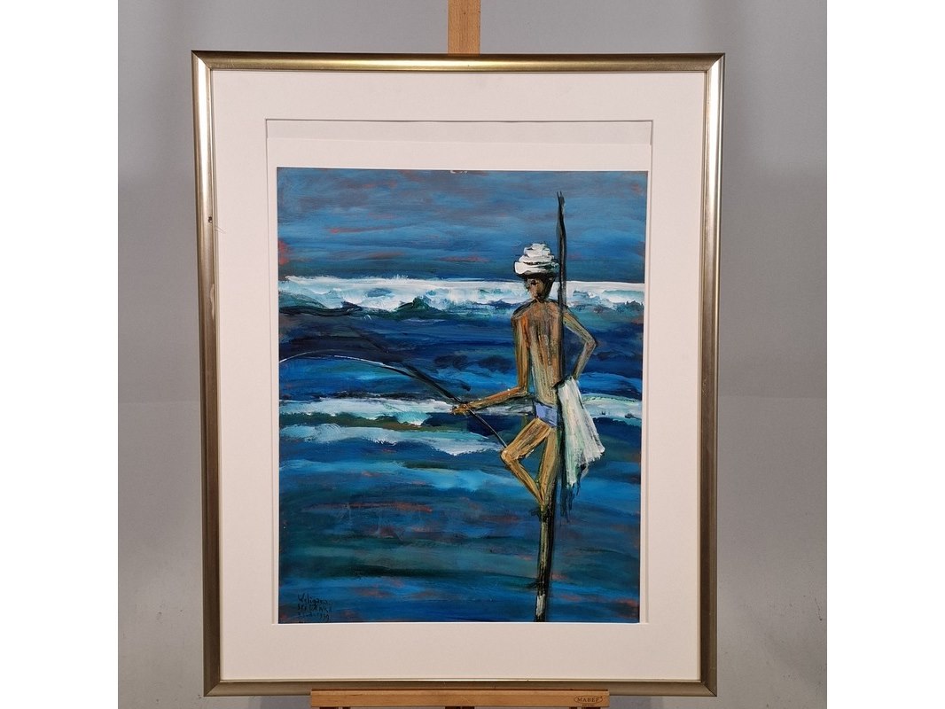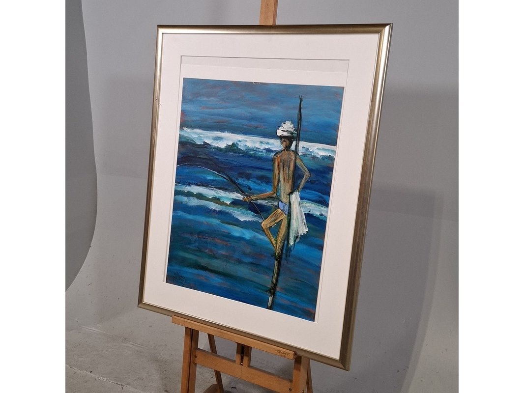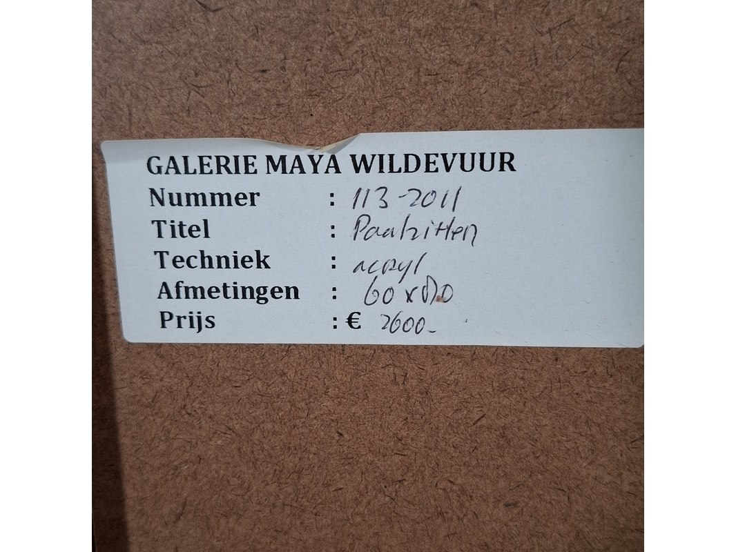 Acryl schilderij, maya wildevuur (1944-2023), paalzitter, 1999