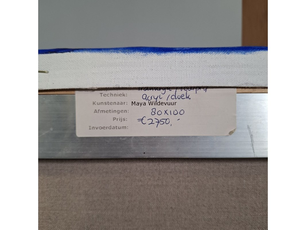 Merk: Maya Wildevuur (1944-2023) Product: Acryl schilderij Afmeting: HxB ca. 80x101 cm. BouwJaar: 2006 Conditie: gebruikt