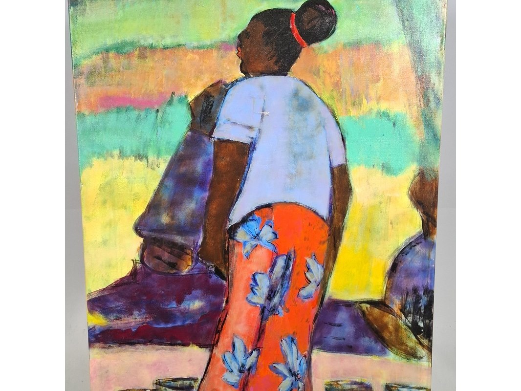 Acryl schilderij, maya wildevuur (1944-2023), marktvrouw