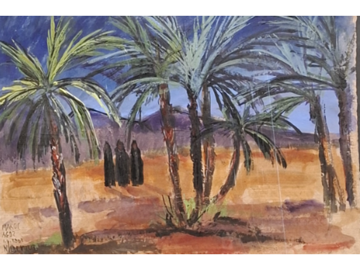 Acryl schilderij maya wildevuur (1944-2023), marokko agdz, bouwjaar 2002