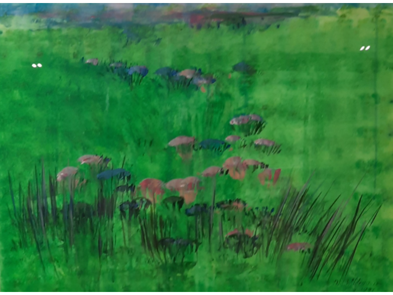 Aquarel, maya wildevuur (1944-2023), bloemenveld, 1991