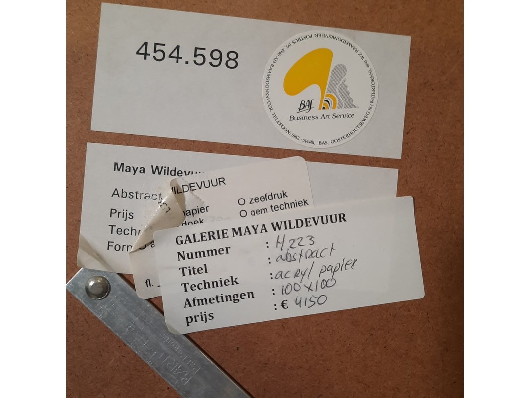 Merk: Maya Wildevuur Product: Acryl schilderij Afmeting: hxb ca. 105x105 cm BouwJaar: 1997