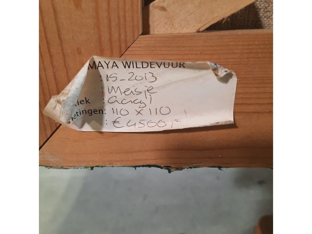 Merk: Maya Wildevuur (1944-2023) Product: Acryl schilderij Afmeting: hxb ca. 110x110 cm BouwJaar: 2013