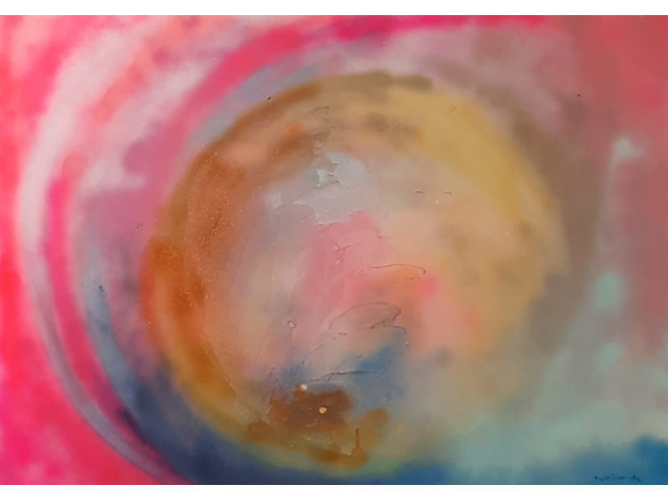 Acryl schilderij, maya wildevuur (1944-2023), 't heelal, 1989