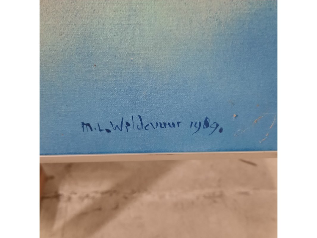 Merk: Maya Wildevuur (1944-2023) Product: Acryl schilderij Afmeting: hxb ca. 100x140 cm BouwJaar: 1989