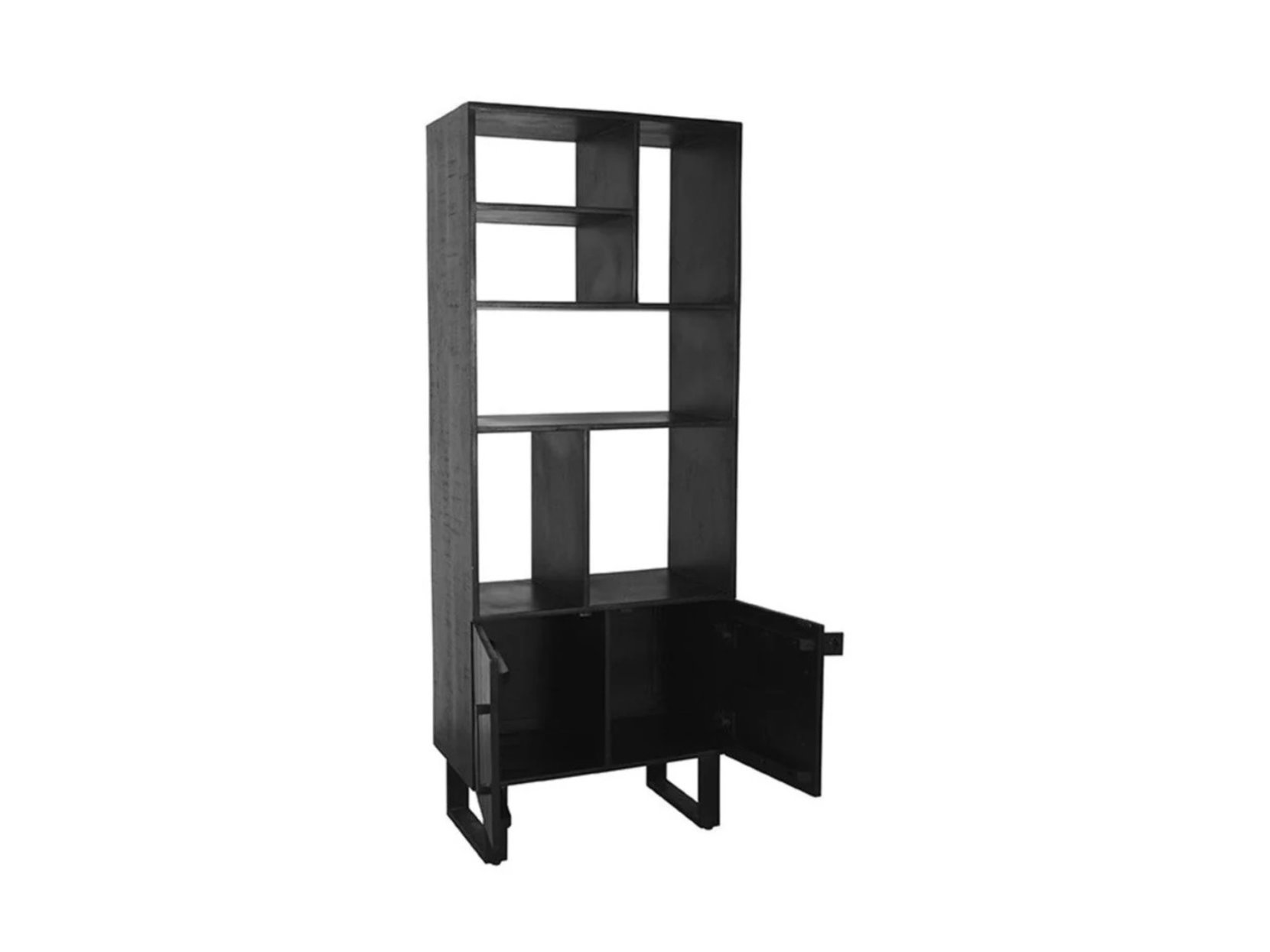 Merk: Label51 Product: Boekenkast Kleur: Zwart Materiaal: Mangohout Afmeting: 74x40x190 cm Specificaties: Nieuw in verpakking