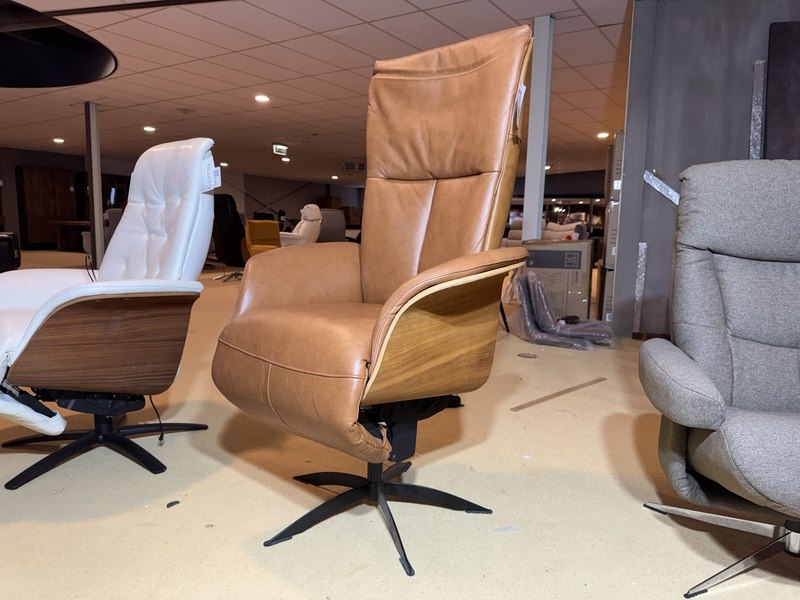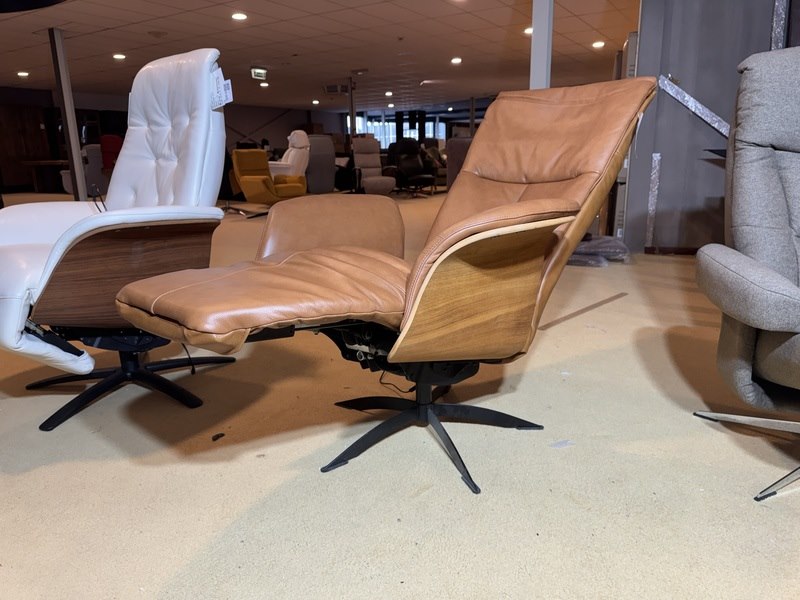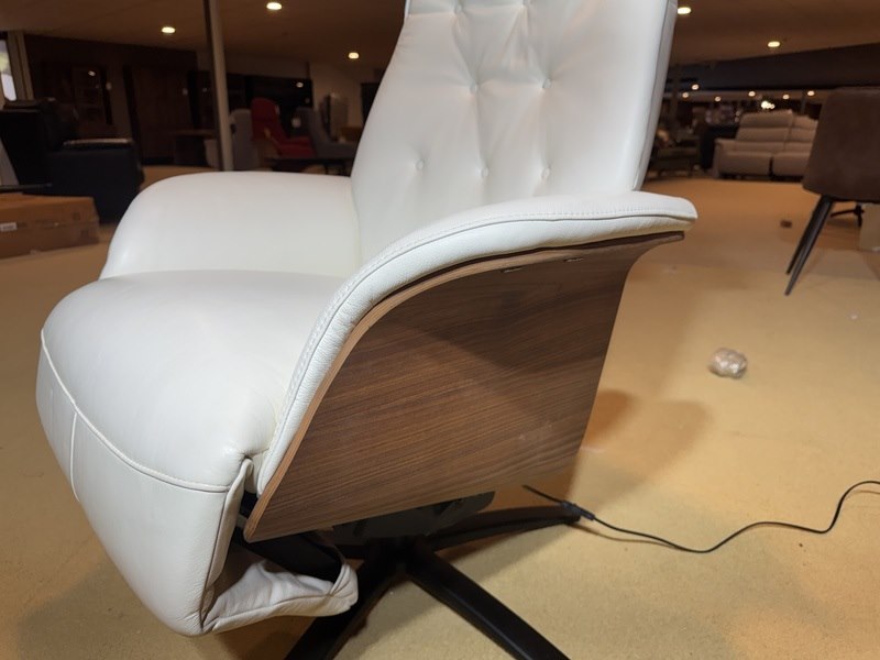 Product: Relaxfauteuil Kleur: Wit Materiaal: Leer Afmeting: M Specificaties: Showmodel