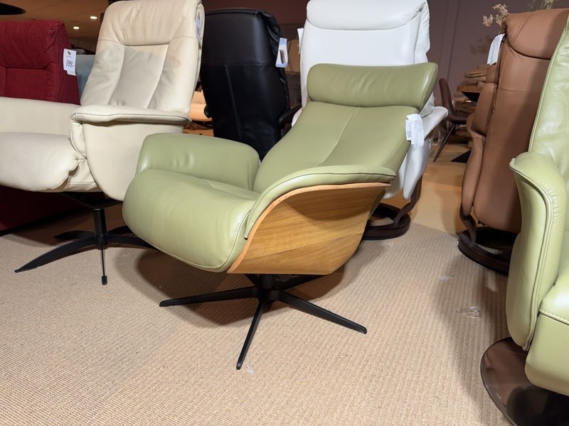 Relaxfauteuil, groen leer, manueel verstelbaar, design