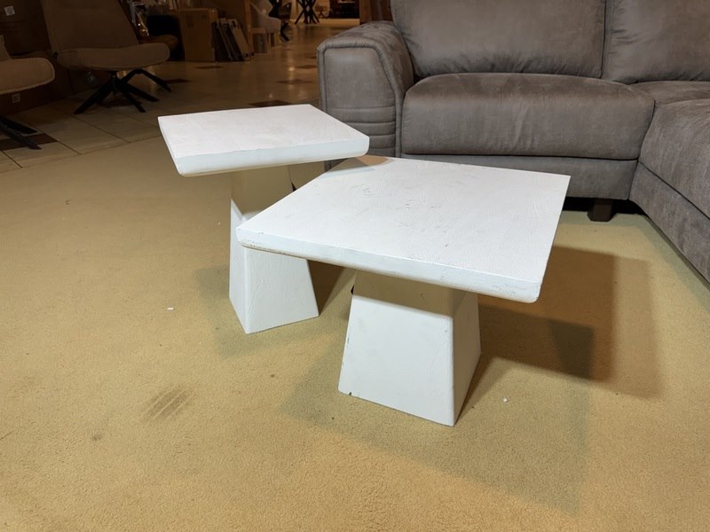 Product: Set van 2 salontafels Kleur: Wit Materiaal: Hout Afmeting: 50x50x42 cm/40x40x50 cm Specificaties: Showmodel