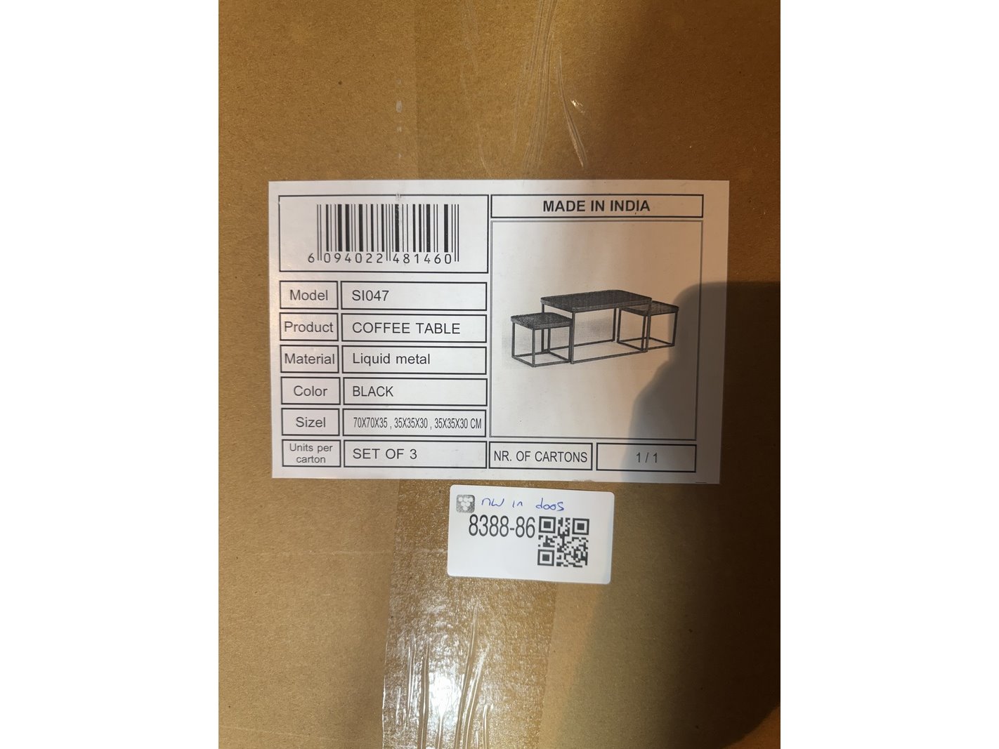 Product: Set van 3 salontafels Kleur: Zwart Materiaal: Metaal Afmeting: 70x70x35 cm, 35x35x30 cm, 35x35x30 cm Specificaties: Nieuw in verpakking