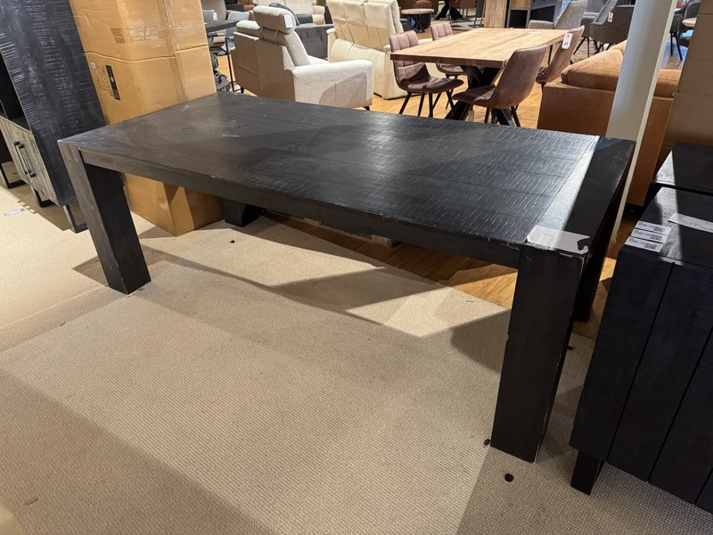 Product: Eettafel Kleur: Zwart Materiaal: Hout Afmeting: 220x100 cm Specificaties: Showmodel