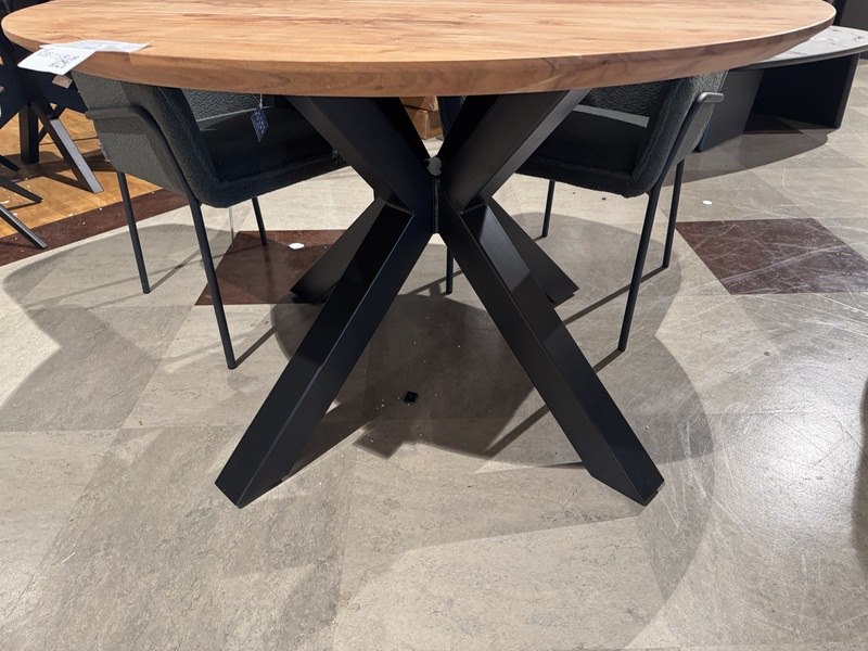 Eettafel, rond 120 cm doorsnee, zwart metalen spinpoot
