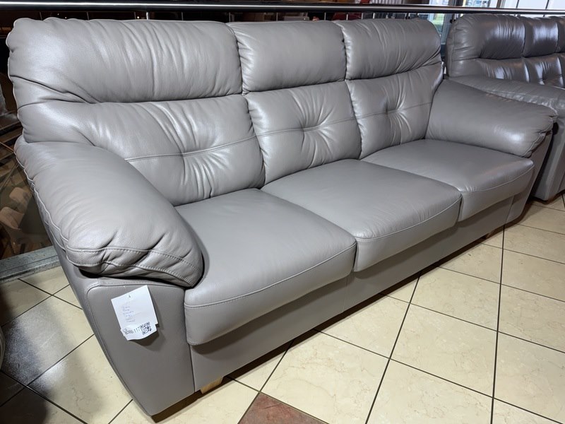 Product: 3-zits bank Kleur: Grijs Materiaal: Leer Afmeting: 210x87 cm Specificaties: Nieuw uit verpakking