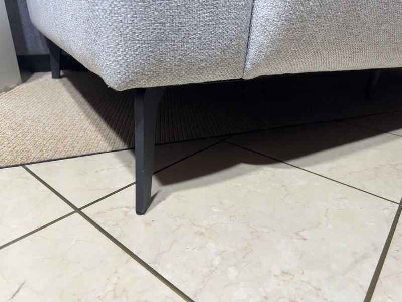 2,5-zits bank, lichtgrijs stof, zwart metalen poten