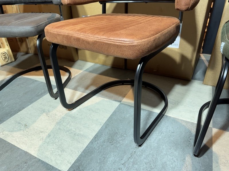 Merk: Label51 Product: Set van 4 eetkamerstoelen Kleur: Cognac Materiaal: Microvezelstof Afmeting: 60x56x85 cm Specificaties: Nieuw in verpakking
