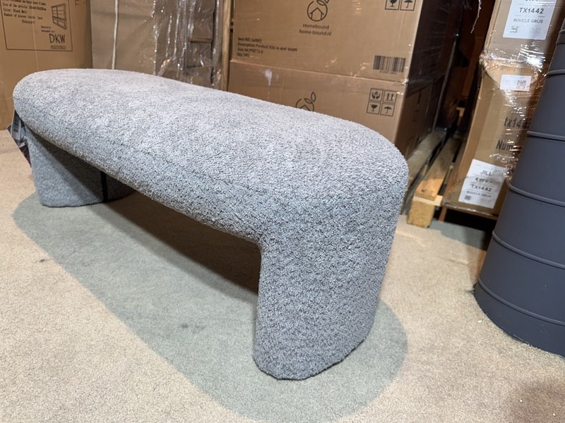 Merk: DKW Product: Bankje Kleur: Grijs Materiaal: Boucle Specificaties: Nieuw in verpakking