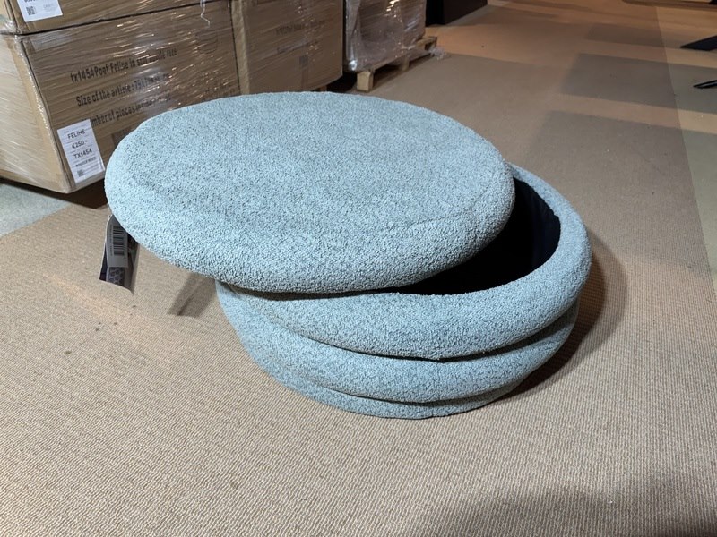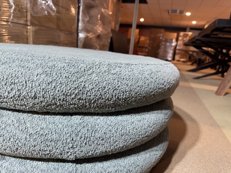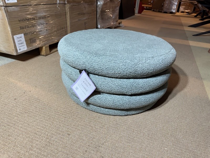 Merk: DKW Product: Poef Kleur: Groen Materiaal: Boucle Specificaties: Nieuw in verpakking