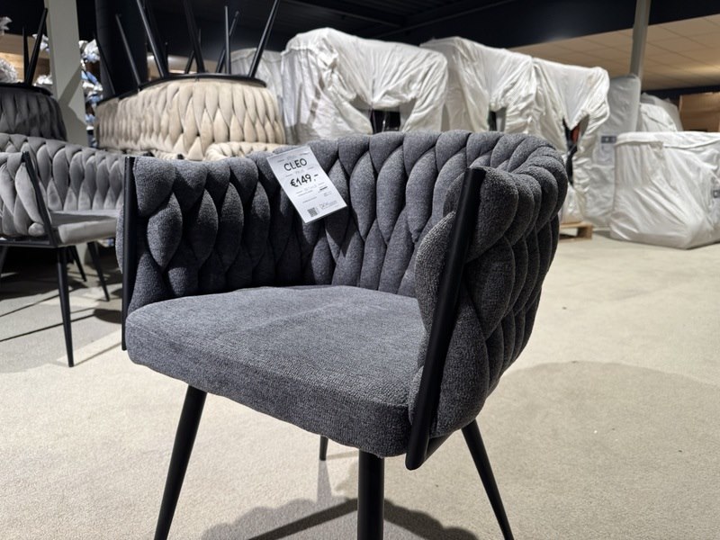 Merk: Home bound by KY Product: Set van 6 eetkamerstoelen Kleur: Antraciet Materiaal: Stof Afmeting: 62x58x78,5 cm Specificaties: Nieuw in verpakking