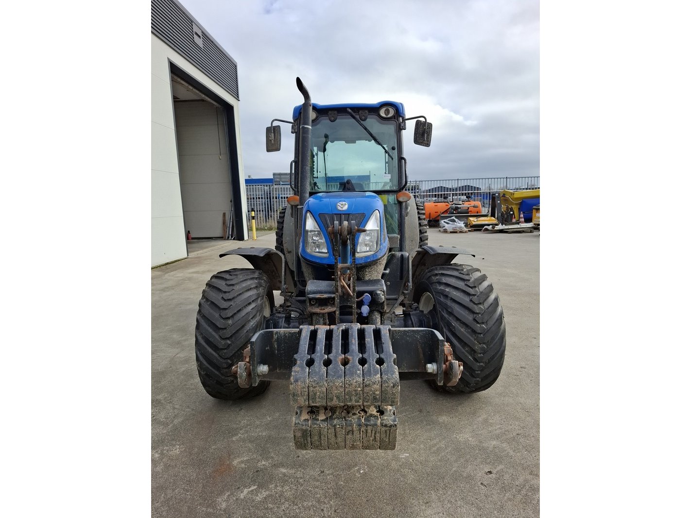 Merk: New Holland Product: Tractor BouwJaar: 2017 Conditie: gebruikt Specificaties: Kenteken: TKK-13-H Afgelezen urenstand: 6375 uur Voorzien van: - Supersteer - Motor: 4-cilinder dieselmotor, 87pk - Op gazonbanden - Banden voor Trelleborg 400/55R17.5 - Banden achter Nokian 540/65R24 - 4DW - Verstelbare trekhaak - Aanhangerremventiel - Frondhef Zuidberg, bj 2012 met hydraulische ventielen en topstang - 6x frontgewicht a 40kg Video https://youtu.be/5VjeuR8jSNA