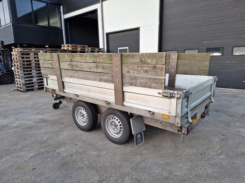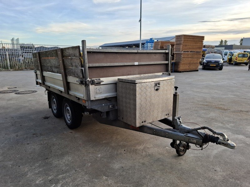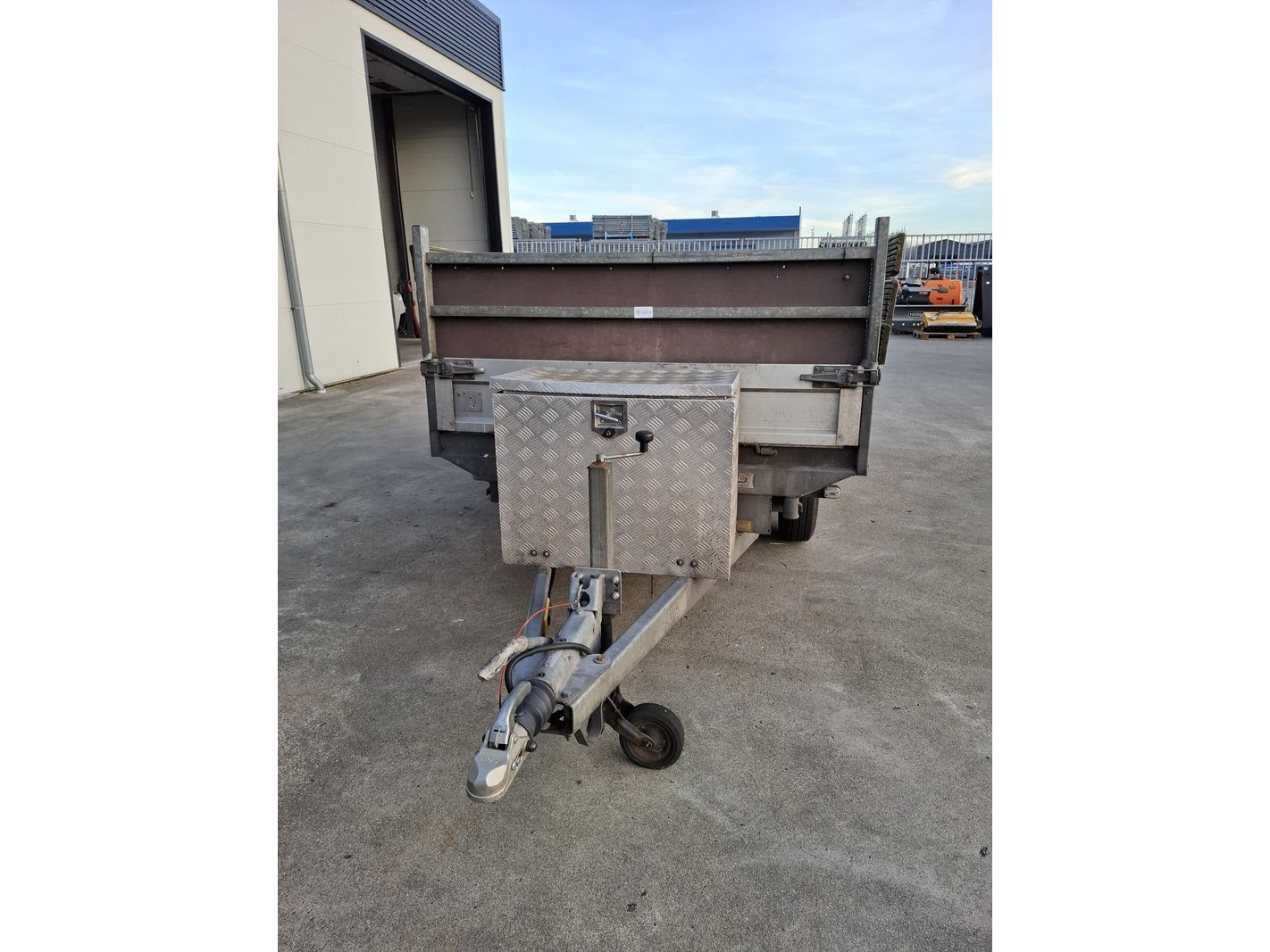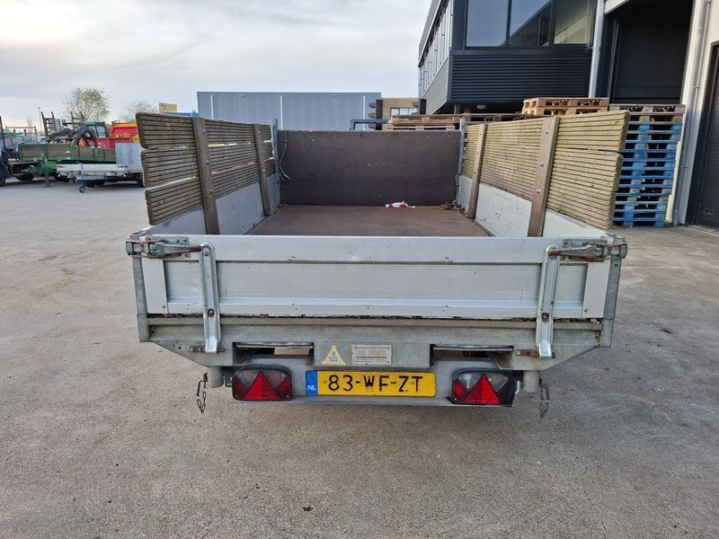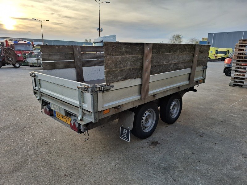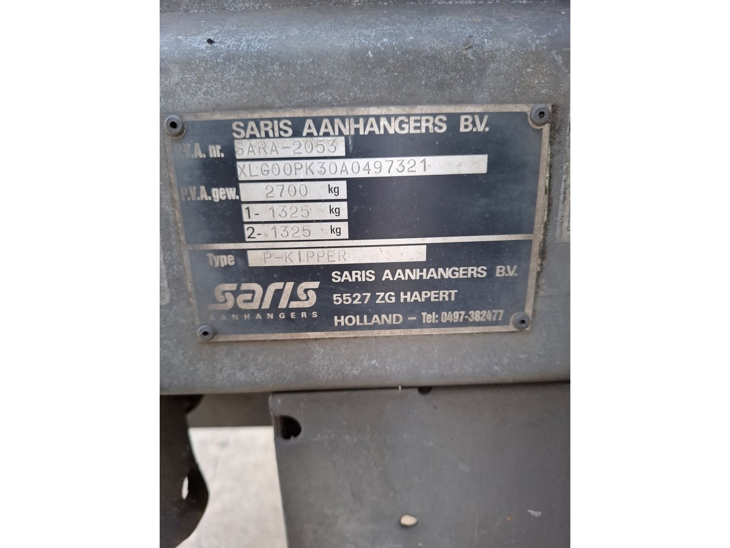 Merk: Saris Product: Aanhangwagen Afmeting: bakmaat lxbxh ca 305x170 cm BouwJaar: 2010 Conditie: gebruikt Specificaties: Kenteken: 83-WF-ZT Massa rijklaar: 720 kg Toegestane max. massa voertuig: 2700 kg - 3-zijdige kipper met oprijplaten - Voorzien van houten ophoogschotten - Elektrisch kiepend