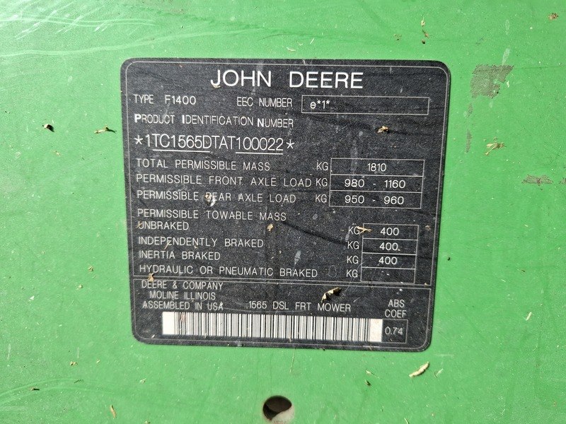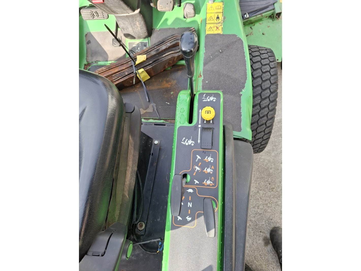 Merk: John Deere Product: Cirkelmaaier Afmeting: maaibreedte ca. 180 cm BouwJaar: 2010 Conditie: Gebruikt Specificaties: Kenteken: T-21-DXB Afgelezen urenstand: 6114 uur Voorzien van een 3-cilinder dieselmotor Maaidek: John Deere DMB210294 MD, bj 2011