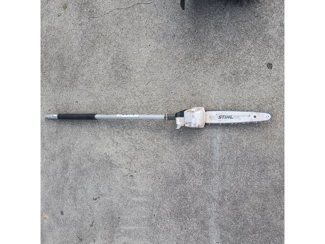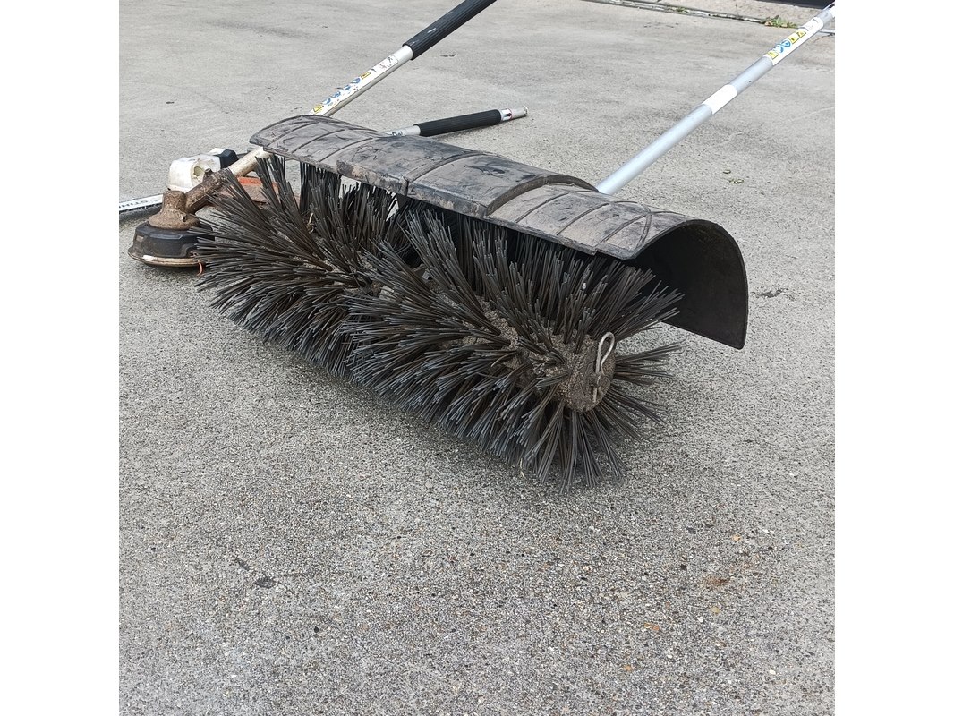 Merk: Stihl Product: aanbouwdeel Conditie: Gebruikt Specificaties: Veegmachine ca. 60 cm breed Hoogsnoeier, lengte blad ca. 29 cm