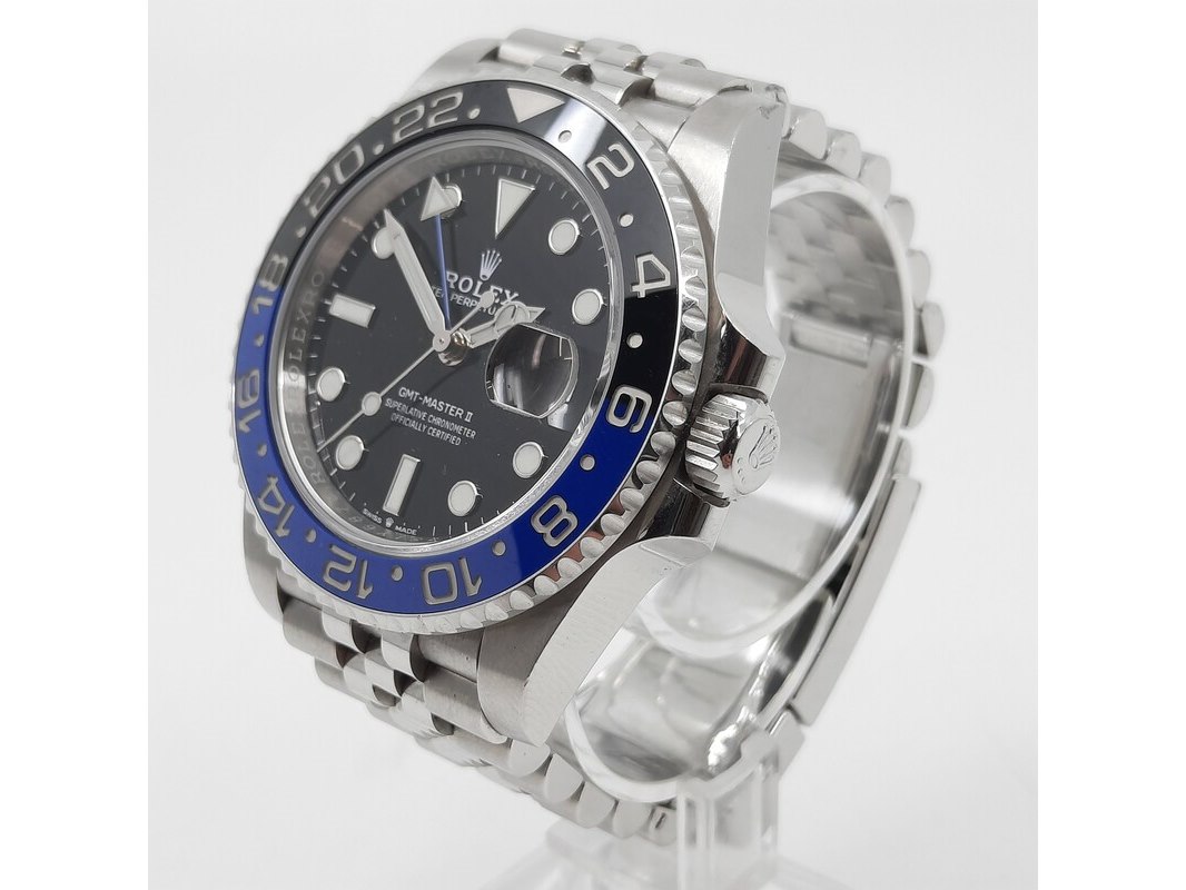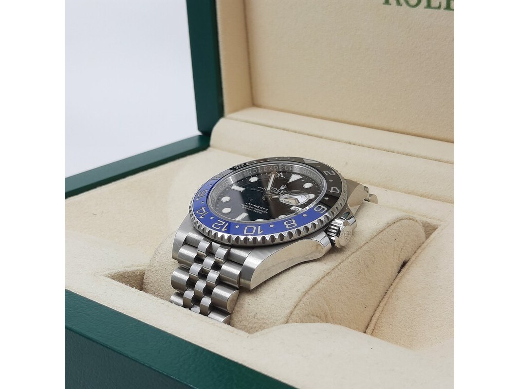 Merk: Rolex Product: Heren polshorloge Conditie: gebruikt Specificaties: Een stalen heren polshorloge, Rolex GMT- Master II 126710BLNR. Met zwarte wijzerplaat en aan stalen Jubilee model band. Inclusief doos, 2x reserveschakel en certificaat.