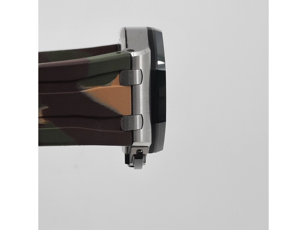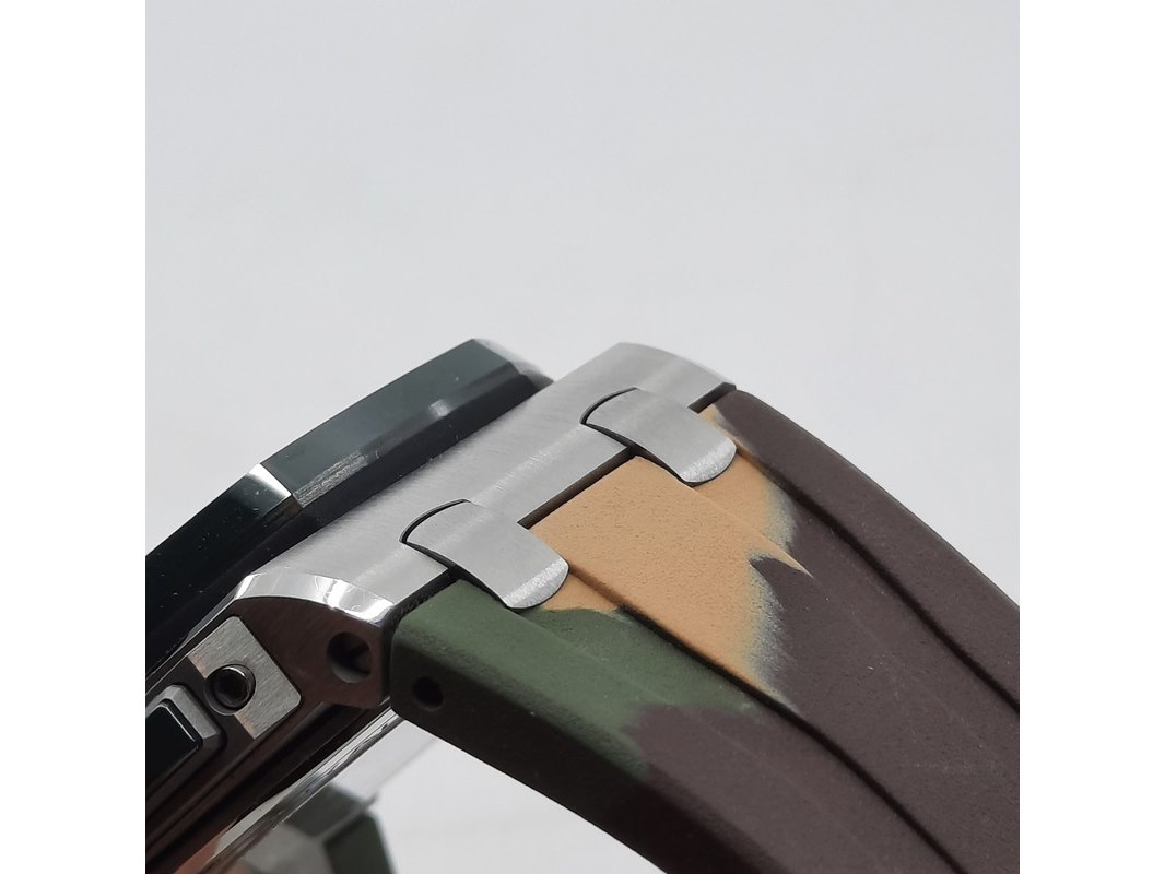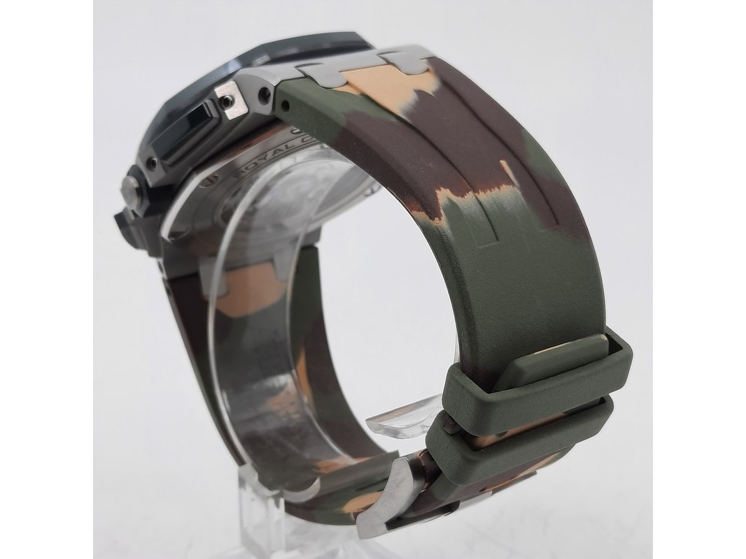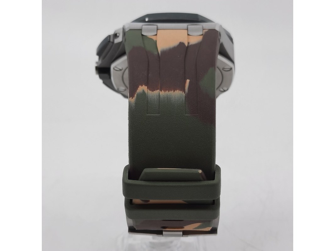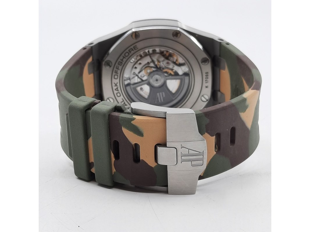 Merk: Audemars Piguet Product: Heren polshorloge Conditie: gebruikt Specificaties: Een stalen heren polshorloge Audemars Piguet Royal Oak Offshore. Met glazen achterdeksel, gele wijzerplaat, chronograaf en rubber band met gesp. Geen doos en geen certificaat.