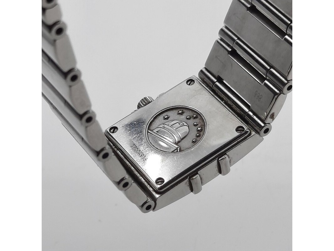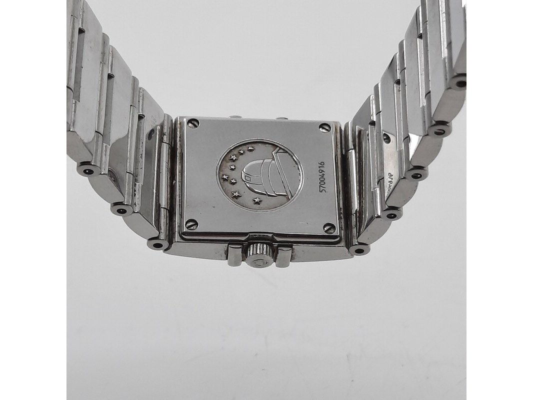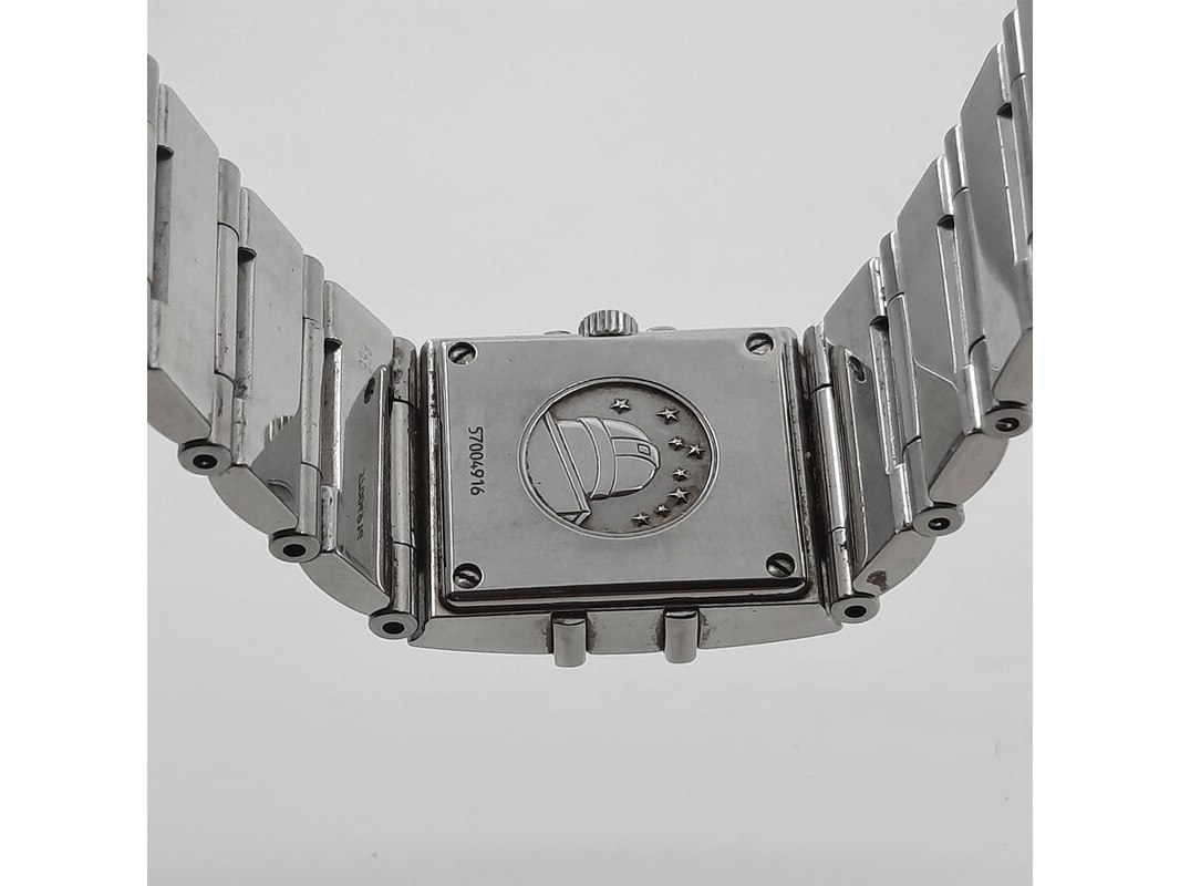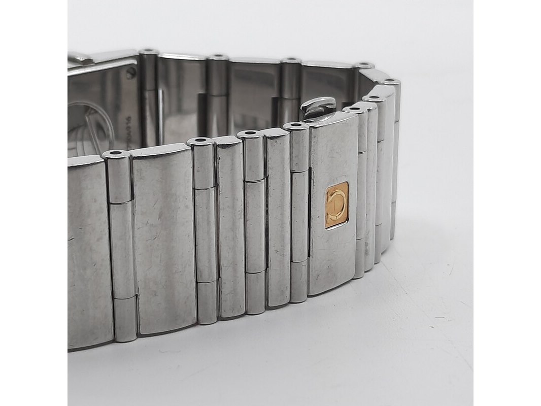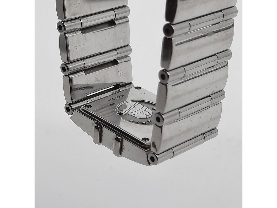 Merk: Omega Product: Dames polshorloge Conditie: gebruikt Specificaties: Een stalen dames polshorloge, Omega Constellation Quadra. Met diamanten lunet, zwarte wijzerplaat, quartz en stalen band met vouwsluiting. Geen doos en geen certificaat.