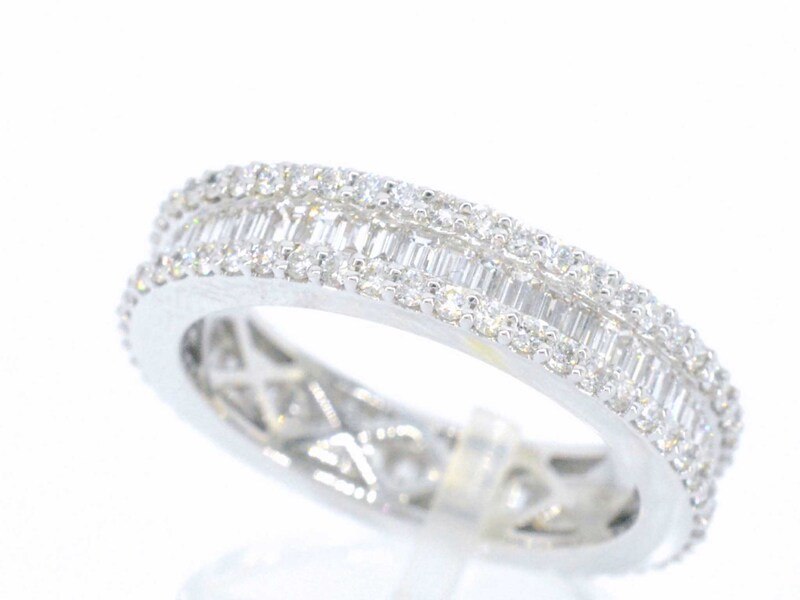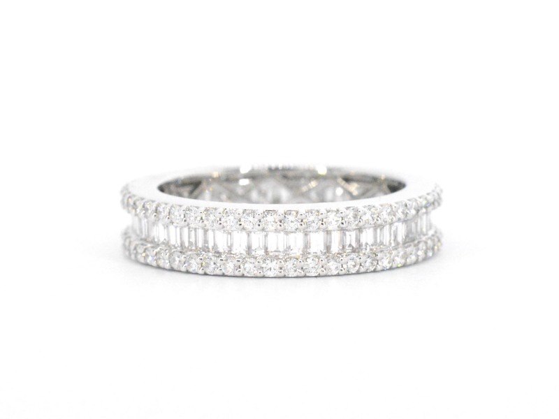 Product: Witgouden ring met briljant en baguette diamanten Specificaties: Diamant: Natuurlijk Slijpvorm: Briljant geslepen en baguette geslepen Gewicht (carat): 3.00 carat Kleur: F-G Zuiverheid: VS Slijpkwaliteit: Zeer mooi Juweel: Ring Gewicht: 5 gram Ringmaat (op maat gemaakt*): 53 (17 mm) Materiaal: 18K goud (750) Conditie: Nieuw Verpakking: Luxe sieradendoos Toelichting: De kwaliteit is overgenomen van het rapport behorend bij item. De waardebepaling is een beoordeling van een gecertificeerde diamantair, gebaseerd op consumentenprijzen. Consumentenprijs: € 16.870,-