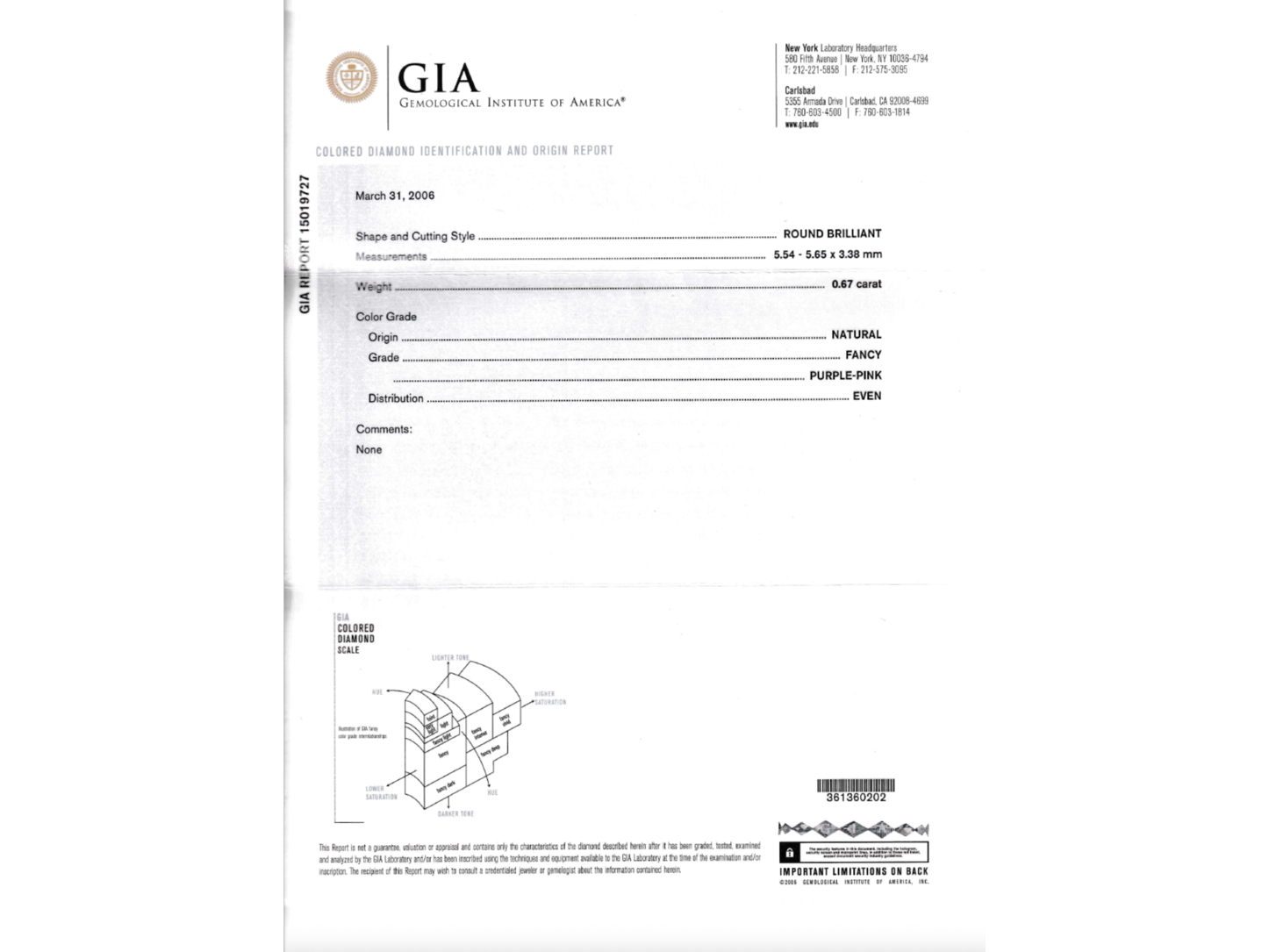 Product: Diamant - 0.67 carat natuurlijke fancy roze gekleurde unieke diamant (gecertificeerd) Specificaties: Diamant: Natuurlijk Aantal: 1 stuk Slijpvorm: Briljant geslepen Gewicht (carat): 0.67 carat Kleur: Optisch vol roze gekleurd Certificaat: GIA Certificaat nummer: 15019727 Extra informatie: Fancy colour diamanten zijn diamanten met een bijzondere kleur en zijn zeer zeldzaam. Hierdoor zijn ze zeer gewild en daardoor in hoge mate geschikt voor beleggingsdoeleinde. Zie GIA-certificaat voor kleur gradering. Conditie: Nieuw Verpakking: Edelsteendoos Toelichting: De kwaliteit is overgenomen van het rapport behorend bij item. De waardebepaling is een beoordeling van een gecertificeerde diamantair, gebaseerd op consumentenprijzen. Consumentenprijs: € 175.000,-
