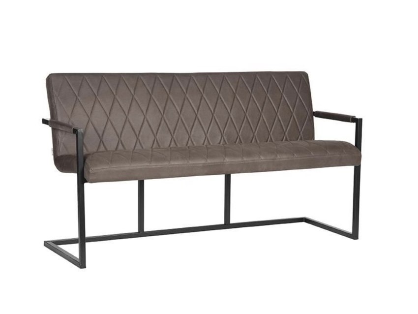 Eetkamerbank, antraciet microvezelstof, zwart metalen onderstel