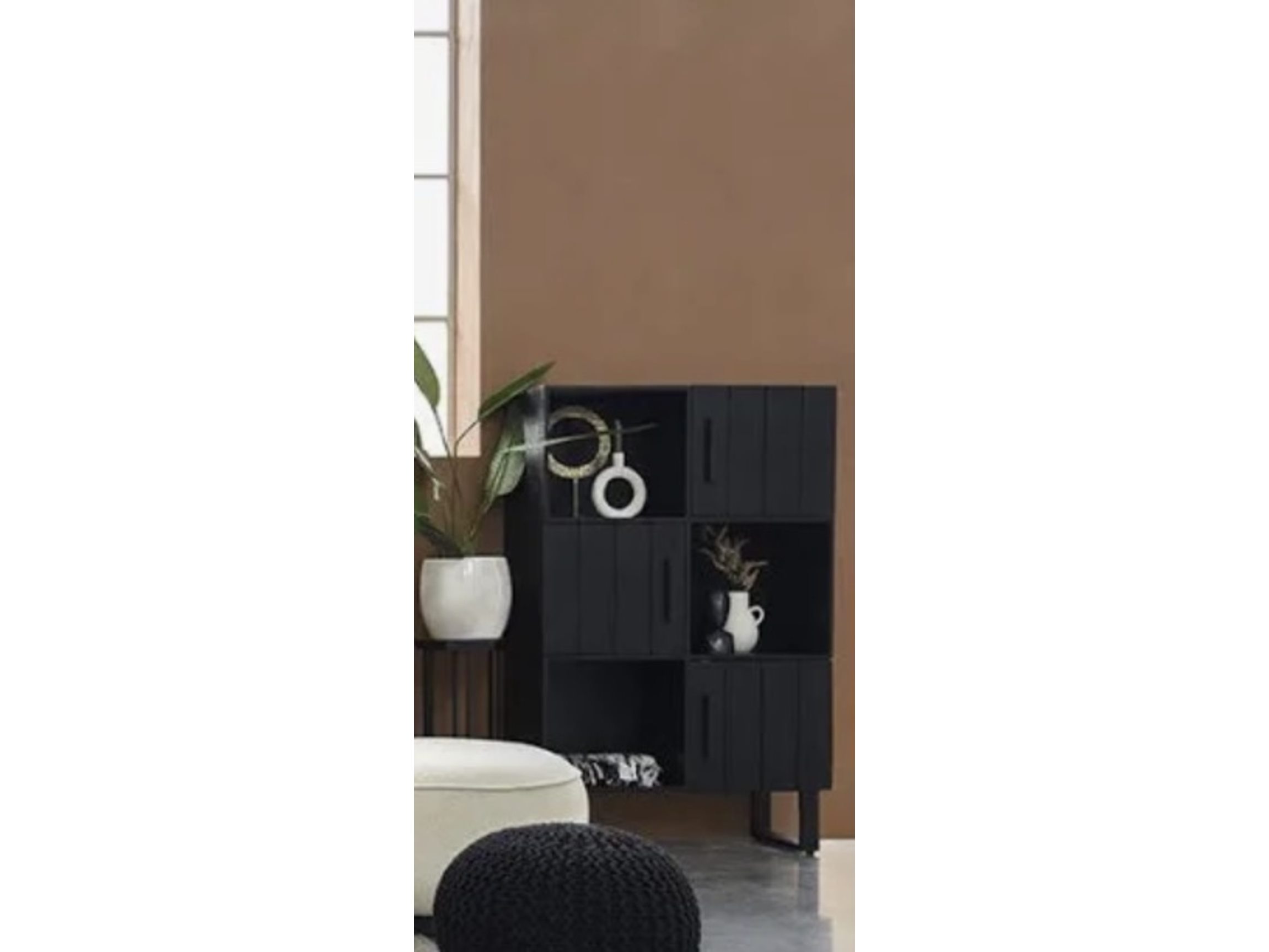 Merk: Label51 Product: Opbergkast Kleur: Zwart Materiaal: Mangohout Afmeting: 94x40x150 cm Specificaties: Nieuw in verpakking