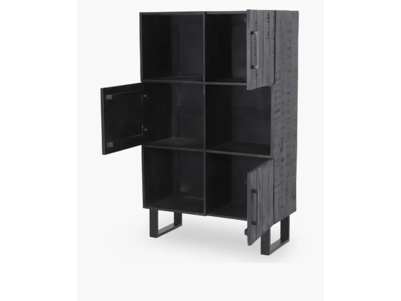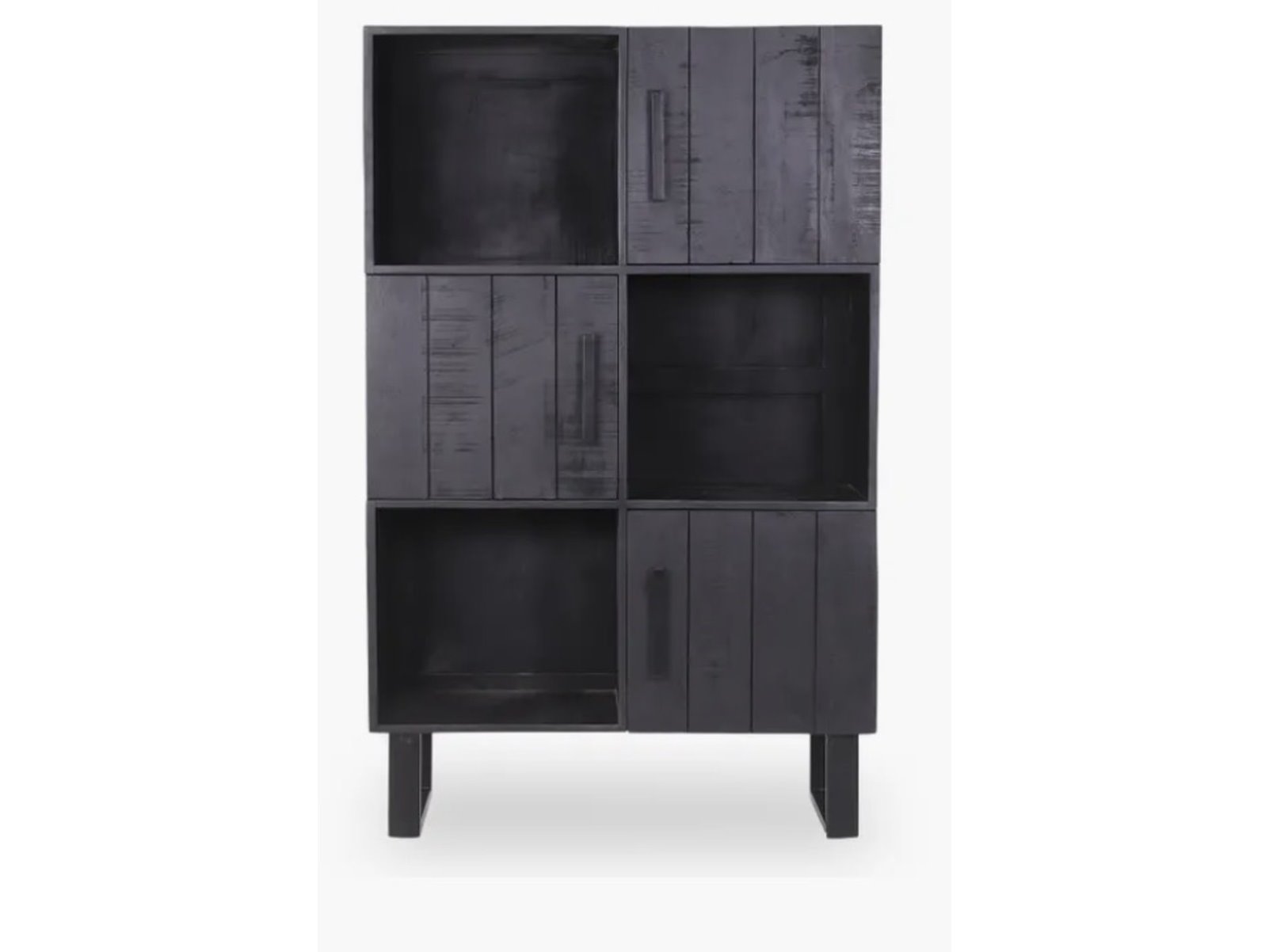 Hoge 2-deurs kast, zwart mangohout, zwart metalen onderstel