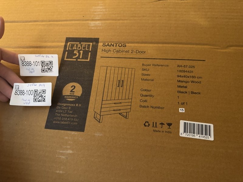 Merk: Label51 Product: Hoge 2-deurs kast Kleur: Zwart Materiaal: Mangohout Afmeting: 94x40x160 cm Specificaties: Nieuw in verpakking