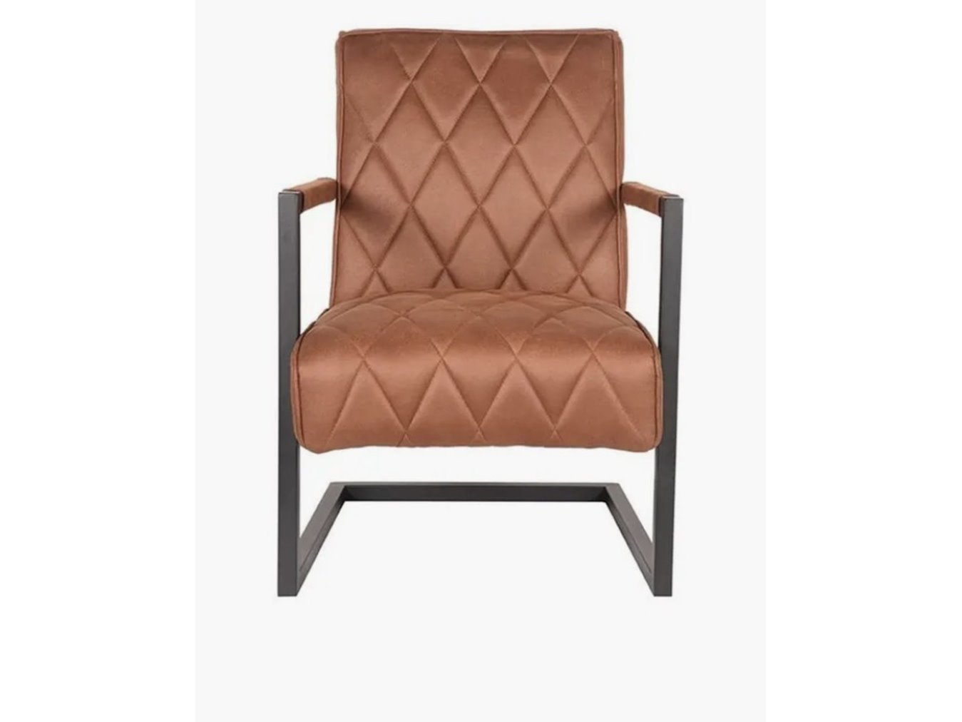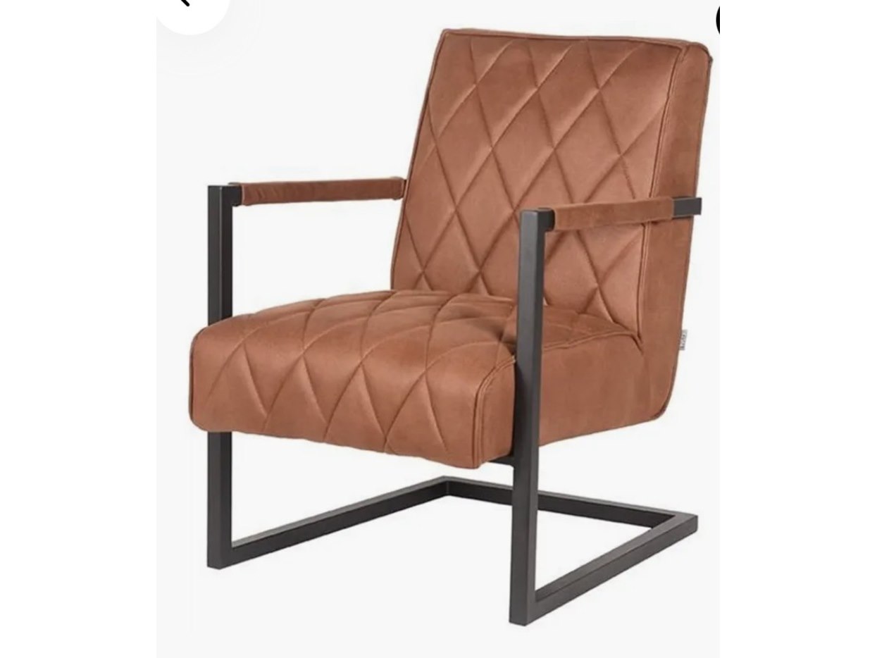 Fauteuil, cognac microvezelstof, zwart metalen onderstel