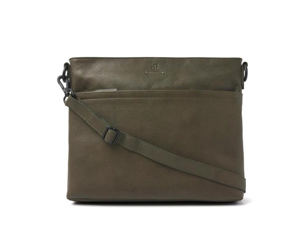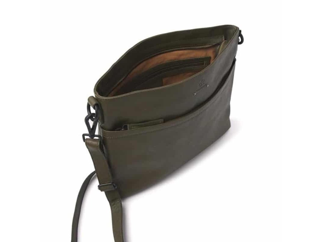 Merk: DR Amsterdam Product: Schoudertas Kleur: Olive Materiaal: zacht rundleder Conditie: nieuw