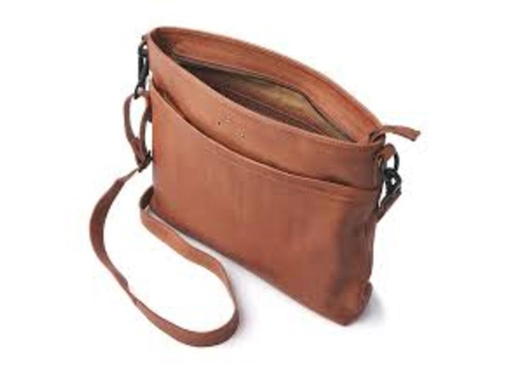 Merk: DR Amsterdam Product: Schoudertas Kleur: Camel Materiaal: zacht rundleder Conditie: nieuw