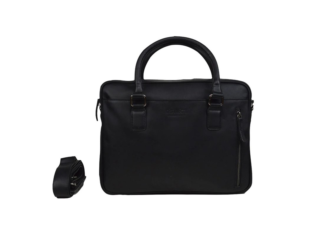 Merk: DSTRCT Product: Laptop tas Kleur: zwart Materiaal: leer Afmeting: 14 inch Conditie: nieuw
