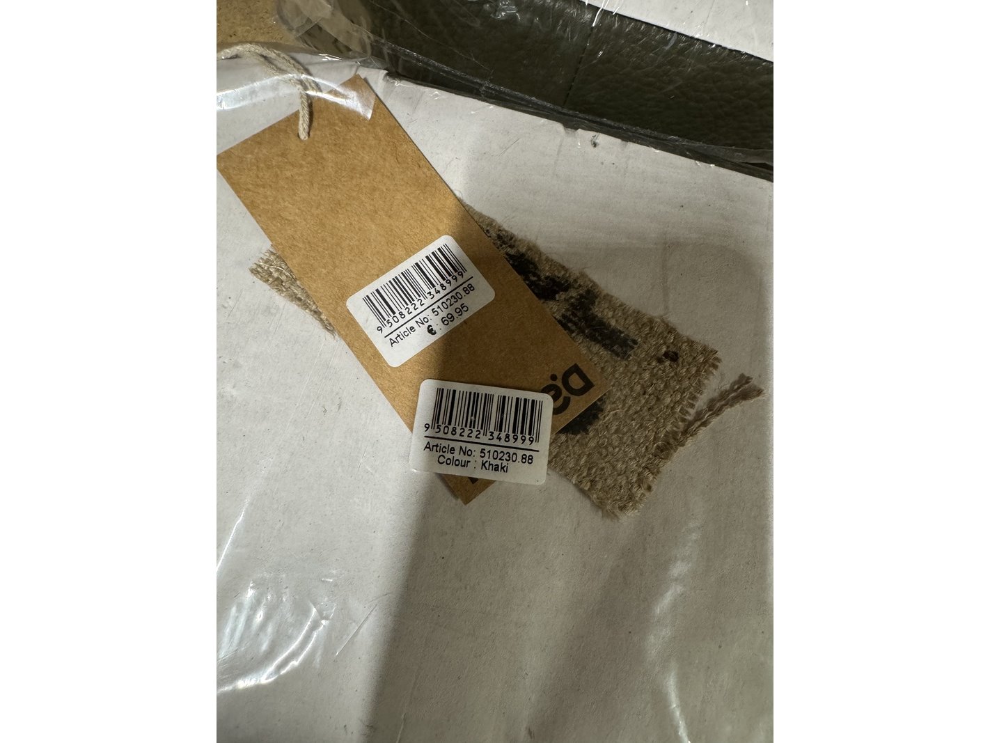 Merk: DSTRCT Product: Schoudertas Kleur: diverse kleren Materiaal: leer Conditie: nieuw Specificaties: 2x 511630-10 zwart, 2x 366330-10 zwart en 2x 510230-88 khaki