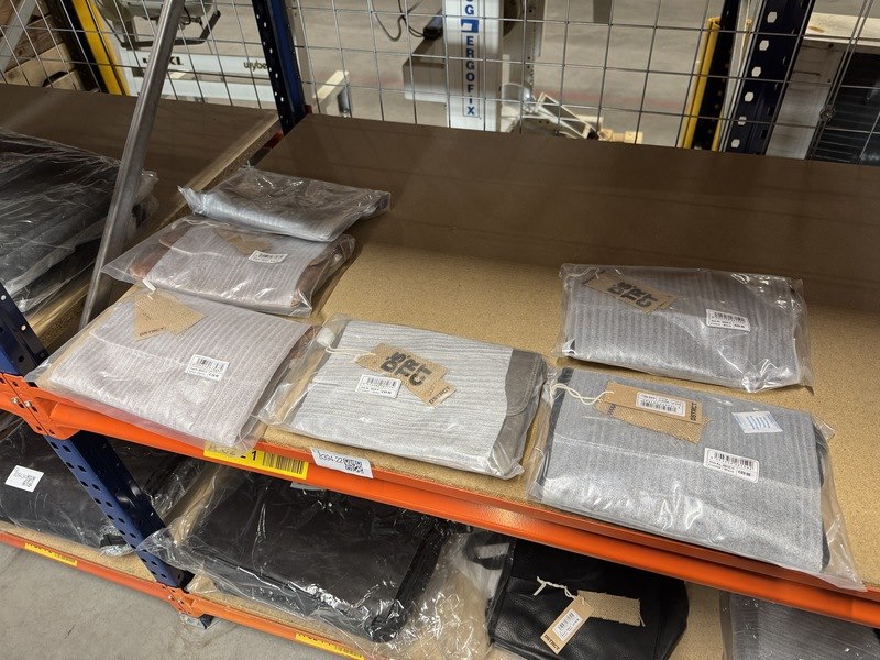 Merk: DSTRCT Product: Schoudertas Kleur: zwart, grijs en cognac Materiaal: leer Conditie: nieuw Specificaties: 2x 366230-10, 1x 356230-40 en 3x 366230-30 cognac