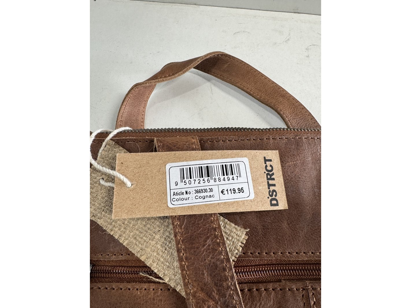 Merk: DSTRCT Product: Laptop tas Kleur: cognac Materiaal: leer Afmeting: 40x30cm Conditie: nieuw