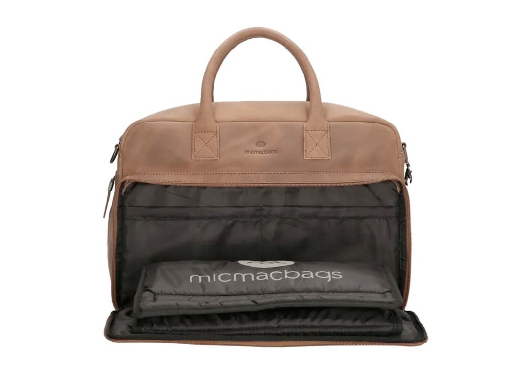 Merk: MicMac Bags Product: Luiertas Kleur: bruin Materiaal: leer Afmeting: 17x28x39cm Conditie: nieuw