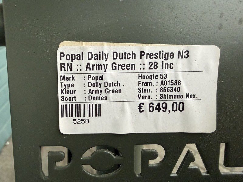 Merk: Popal Product: Dames stadsfiets frame maat 53 3 versnellingen Kleur: Army Green Afmeting: Hoogte 53 Specificaties: Nieuw. Deze fiets is uitsluitend als showroommodel gebruikt en verkeert daardoor in nieuwstaat, zonder gebruikssporen.