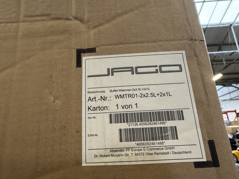 Merk: JAGO Product: Buffetverwarmer 2x2,5L+2x1L Conditie: nieuw