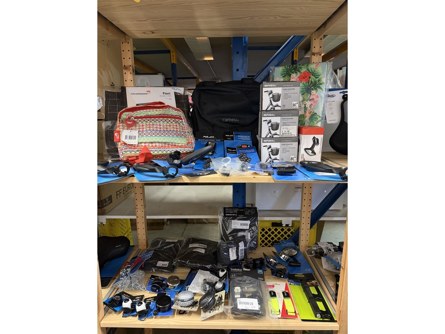 Merk: w.o. Basil, Bobike, Newlooxs, XLC Product: Partij fiets artikelen ca. 48x w.o. fietslampen, fietstassen, spiegels Conditie: nieuw